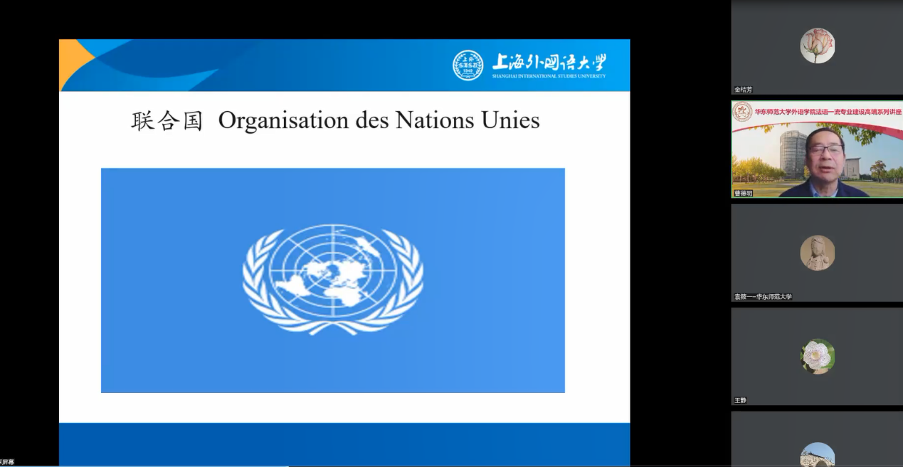法语一流专业建设高端系列讲座第二讲。讲座由王静教授主持,共计250余名校内外师生通过腾讯会议在线参与。