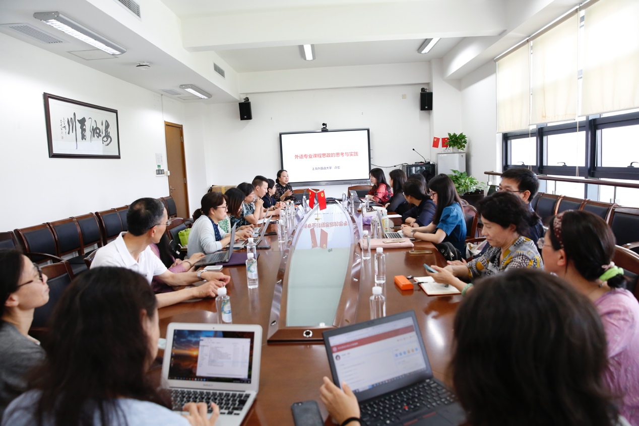 在研讨环节,与会的各专业任课教师围绕所承担的课程,从课程思政的设计思路、思政元素的挖掘与运用、教学评价方法、教材的引用等方面进行广泛而深刻的讨论,在集思广益中共同推动我院外语课程思政能力的提升与发展。