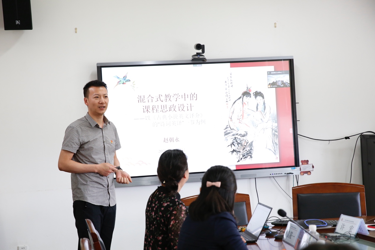大学英语教学部赵朝永教授介绍了他所主讲的《古典小说英文译介》中课程思政的设计思路。他聚焦“诗词译介”,阐述了该课程对学生在价值塑造上的重要作用,展示了课程的主要内容、教学方法、目标达成的评价方式、课程资源、学习要求及考核方式。赵老师抓住古今中外诗歌均具有的“以诗言志”的特点,通过课前的经典诗歌赏析,鼓励学生比照现实中的自己,实现其世界观、人生观、价值观的塑造;通过课堂教学中汉语诗歌及其英译本的对比分析,从语言和文化两个维度思考诗歌的古今差异和中英差异,提升学生对民族语言的自豪感,培养学生家国情怀;通过探讨诗歌英译与传播的问题和出路,培养学生对中国文学、中国文化走出去的使命感和责任心。赵老师重点推介了今年五月由麻豆视频