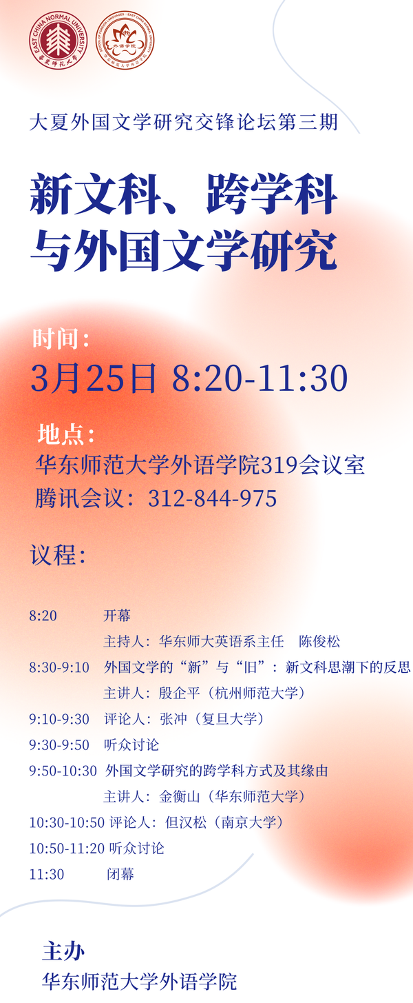 【已结束】大夏外国文学研究交锋论坛第三期:新文科、跨学科与外国文学研究
