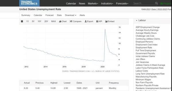 首先,美国在经济方面面临高失业率和通货膨胀两大问题。美国总体经济呈现向好趋势,在经历了为期三个月的经济衰退期后快速恢复,诸如国内生产总值、个人消费支出、标准普尔500指数、家庭财富以及道琼斯工业平均指数等多项指数均已恢复甚至高于疫情前水平。