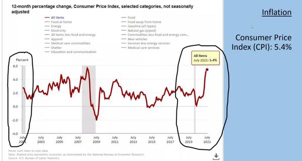 但对于低收入者而言,经济形势不容乐观,失业率仍处于高位。为了支撑疫情下的经济市场,拜登推出了“重建美好未来”计划(Build Back Better),这项经济计划包括重建美国基础设施、延长育儿赋税优惠等措施,另外还将以提高企业税的方式为该计划提供资金。这一举措在经济上是可行的,但是“前所未有”的财政刺激举措却导致了通胀,美联储投放了以万亿美元计的货币,由此导致了自大萧条时期以来最大的一次货币供应量扩张。美国劳工部数据显示,7月美国消费者物价指数(CPI)较去年同期上升5.4%,是2008年经济危机以来最大的单月同比升幅。尽管多项经济指标持续回暖,但随着普通商品大幅涨价,人们的生活成本上升,普通群众尤其是低收入人群对拜登政府的不满情绪有所上升。