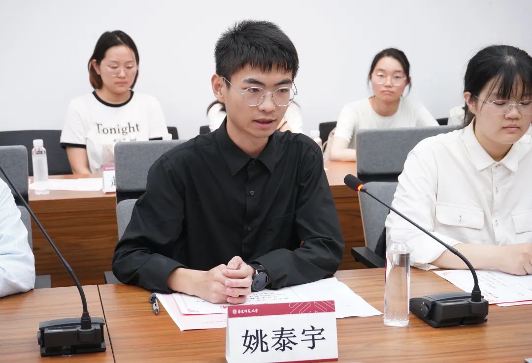2021级物理学专业姚泰宇和2022级英语专业胡邵暄作为获奖学生代表依次发言。姚泰宇结合自己的学习经历表示,杨校长的人生故事深深激励着他不断前行。他谈到自己在求学路上的奋斗与感悟,并立下志愿:将个人成长与国家需要相结合,用教育点亮贫困地区孩子们的梦想。