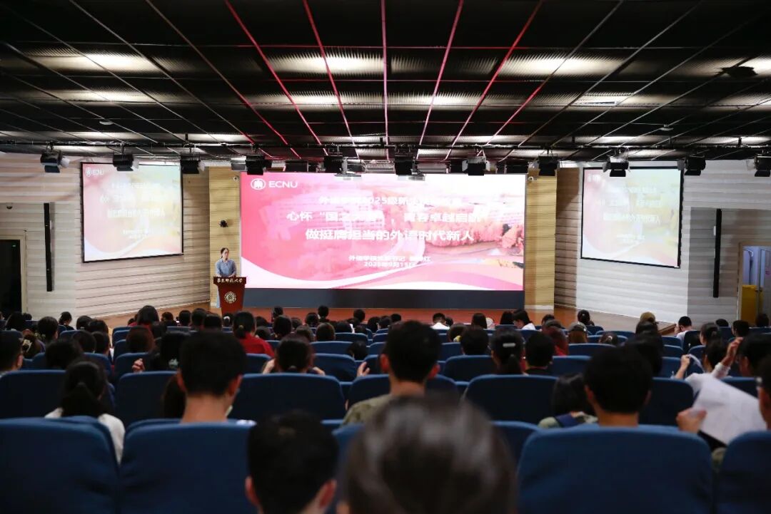 2025级全体新生的到来表示热烈欢迎。她首先与同学们共同回顾了习近平在纪念中国人民抗日战争暨世界反法西斯战争胜利80周年大会上的讲话精神,提到了在“两个大局”交织激荡的时代背景下,中国坚持走和平发展道路,与各国人民携手构建人类命运共同体的重要价值和意义。她强调,构建人类命运共同体,提升中国国际话语权,需要更多专业背景多元、精通多种语言、综合素质高的创新型、复合型人才,学好外语大有可为。