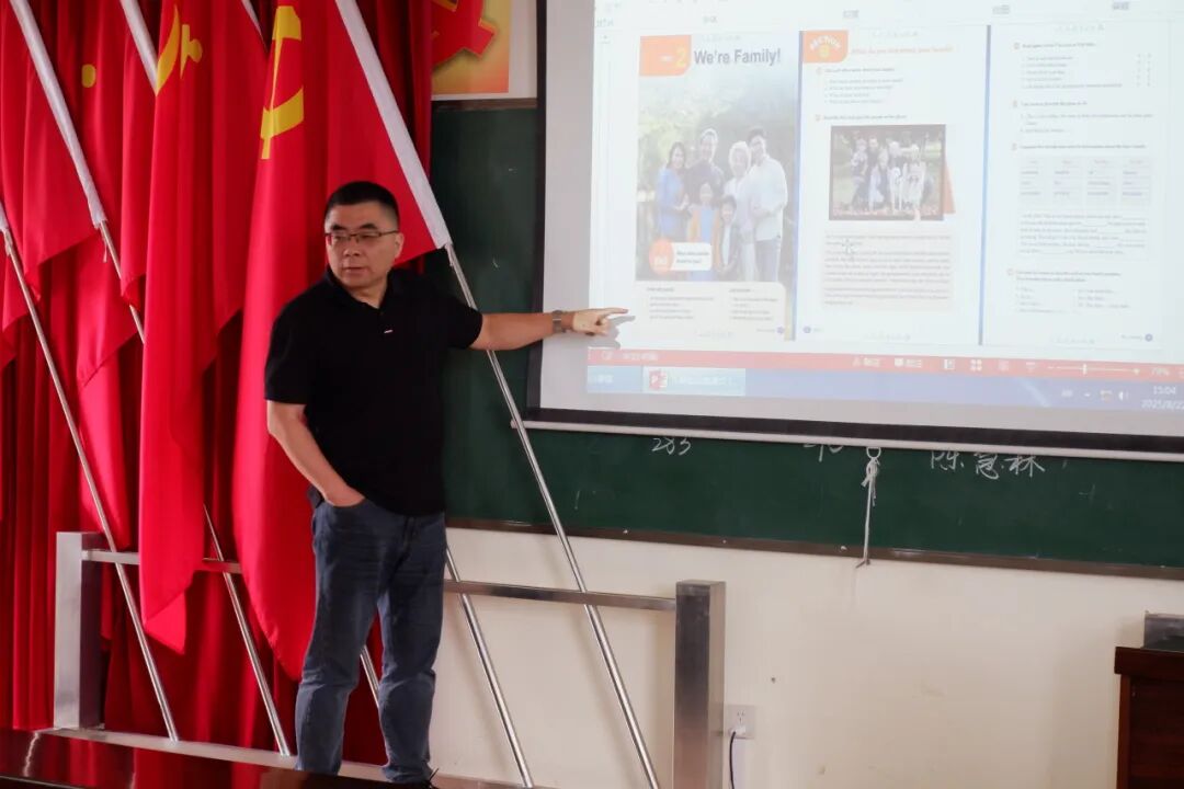 聚焦问题,全建强强调了教师专业发展与学生学习提升的密切关联,表示将为金所中学英语教师提供免费的线上资源和相关讲座,提供专业化、针对性的教研支持。此外,他通过具体案例分享了提高学生英语水平的有效方法,强调了教师教学设计的重要性,并提出了利用课堂时间增强学生听说读写能力的策略。