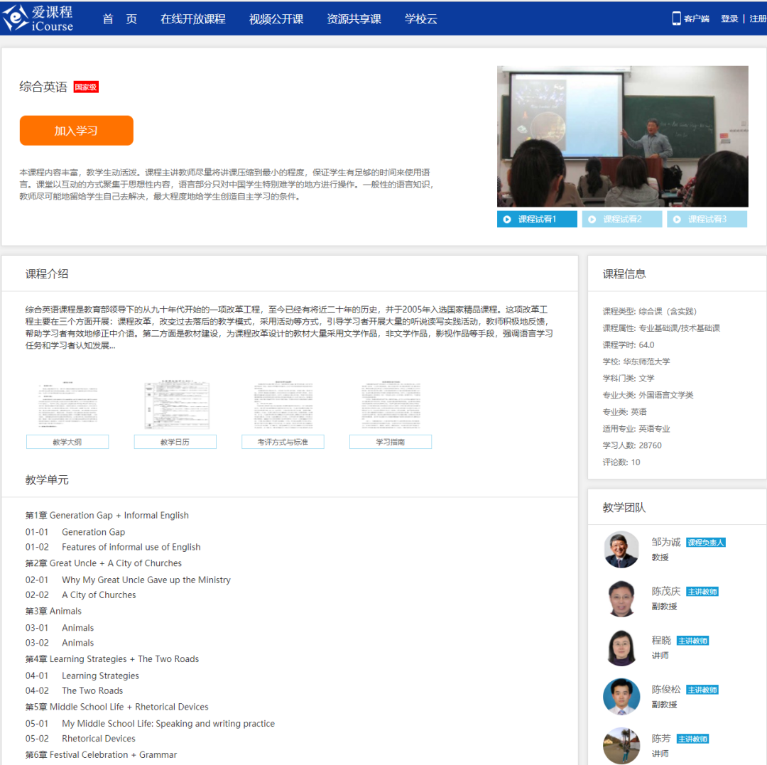 1. 《综合英语》国家精品资源共享课