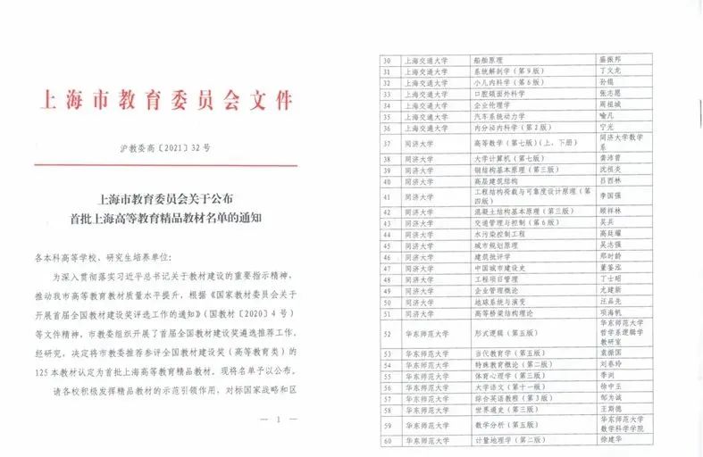 为深入贯彻落实习近平总书记关于教材建设的重要指示精神,推动上海市高等教育教材质量水平提升,根据《国家教材委员会关于开展首届全国教材建设奖评选工作的通知》(国教材(2020] 4 号)等文件精神,上海市教委组织开展了首届全国教材建设奖遴选推荐工作。经研究,决定将上海市教委推荐参评全国教材建设奖(高等教育类)的125本教材认定为首批上海高等教育精品教材,其中包括麻豆视频 邹为诚教授主编的《综合英语教程》(第3版)。