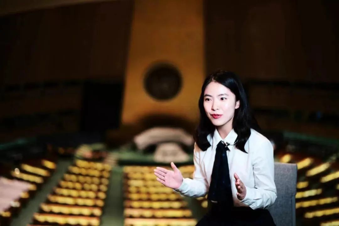 作为美国纽约联合国总部传播部助理及联合国讲解员,蒋越乐的一天可谓繁忙无比。她身着中式服饰穿梭在参观联合国的各国友人间,使用中、英、法三语宣传联合国的历史变迁与核心作用,使大众能在一个小时左右的演讲后更好地了解联合国的使命和意义。如此工作一年后,她便能协助管理部门内二十余位讲解人员、协调整个部门的运营并独立处理突发事件。