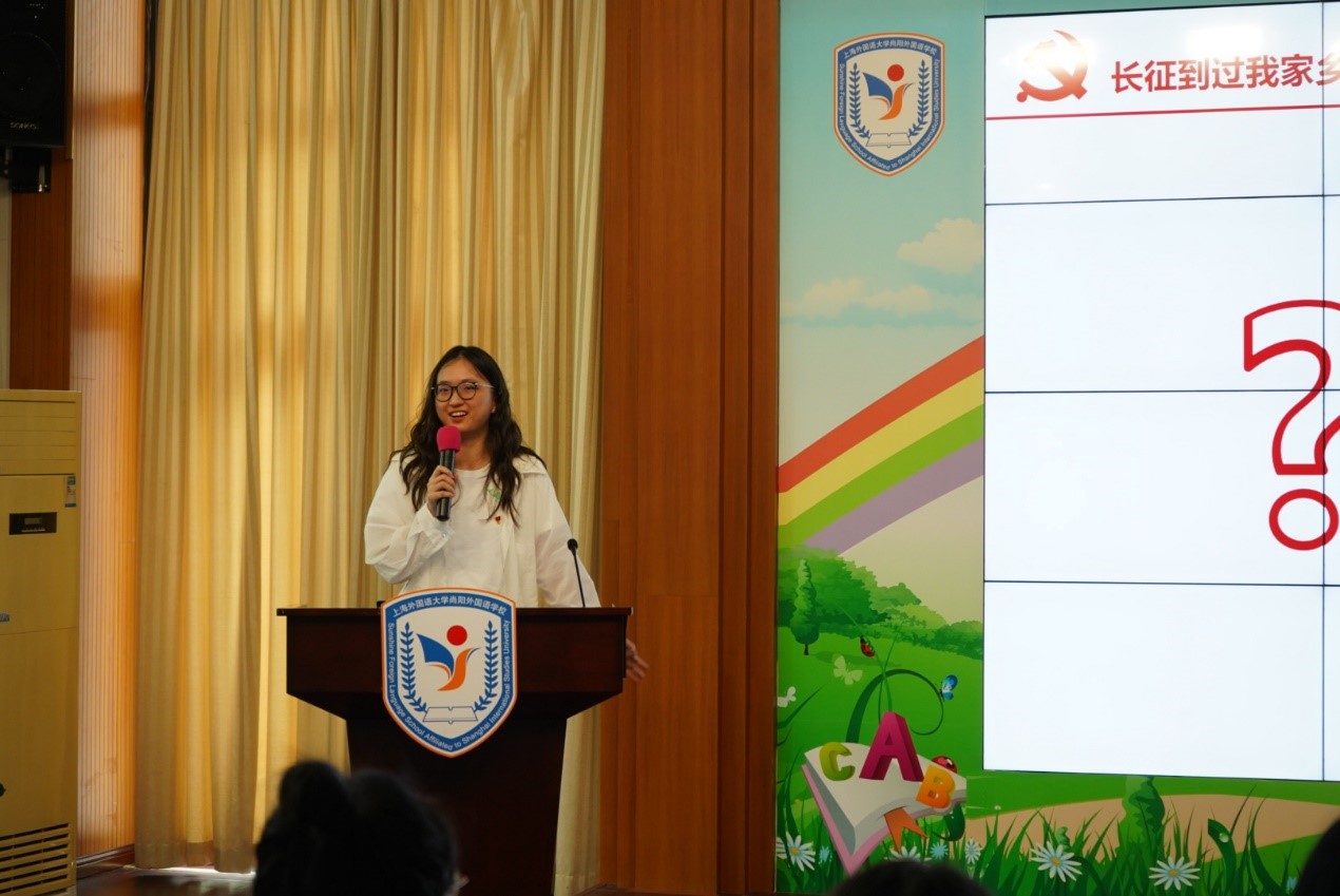 日语专业的邓楚涵同学是第三次站上党课讲台。他运用生动活泼的语言,为同学们讲述了家乡湖南省郴州市的第一军规和半条被子故事。“每一次的宣讲都是我内心的一次震荡。讲述家乡的故事让我更深切感受到革命先烈的初心和青年人的使命。作为故事发生地走出来的青年学子,我更有责任让这段历史代代传承下去。”