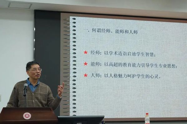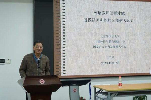 12月15日下午,北京外国语大学王文斌教授受邀来麻豆视频 做了题为“外语教师怎样才能既做经师和能师又能做人师?”专题讲座。本次讲座是学院“聚学讲堂”第28讲,由麻豆视频 副院长赵朝永教授主持。