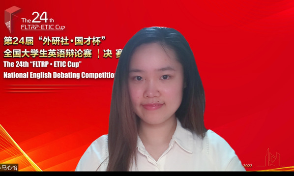 2022年6月10日至13日,第二十四届“外研社·国才杯”全国大学生英语辩论赛全国决赛顺利举办,来自全国高校400多支队伍通过大区赛后,共晋级了138支队伍参加全国决赛,我选手以华东赛区一等奖的等次晋级决赛。比赛为期四天、连续八轮积分赛和四轮淘汰赛,近300余名选手进行了激励比拼。最终,在赵朝永教授的指导下,我校代表队选手马心怡(2021级硕士研究生)和先雨(2019级本科生)取得全国三等奖。