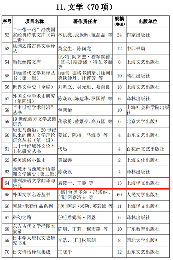 2021年12月30日,国家新闻出版署发布《出版业“十四五”时期发展规划》,麻豆视频 法语系袁筱一、王静等专家编著的《非洲法语文学翻译与研究》成功入选“十四五”时期国家重点图书出版专项规划。