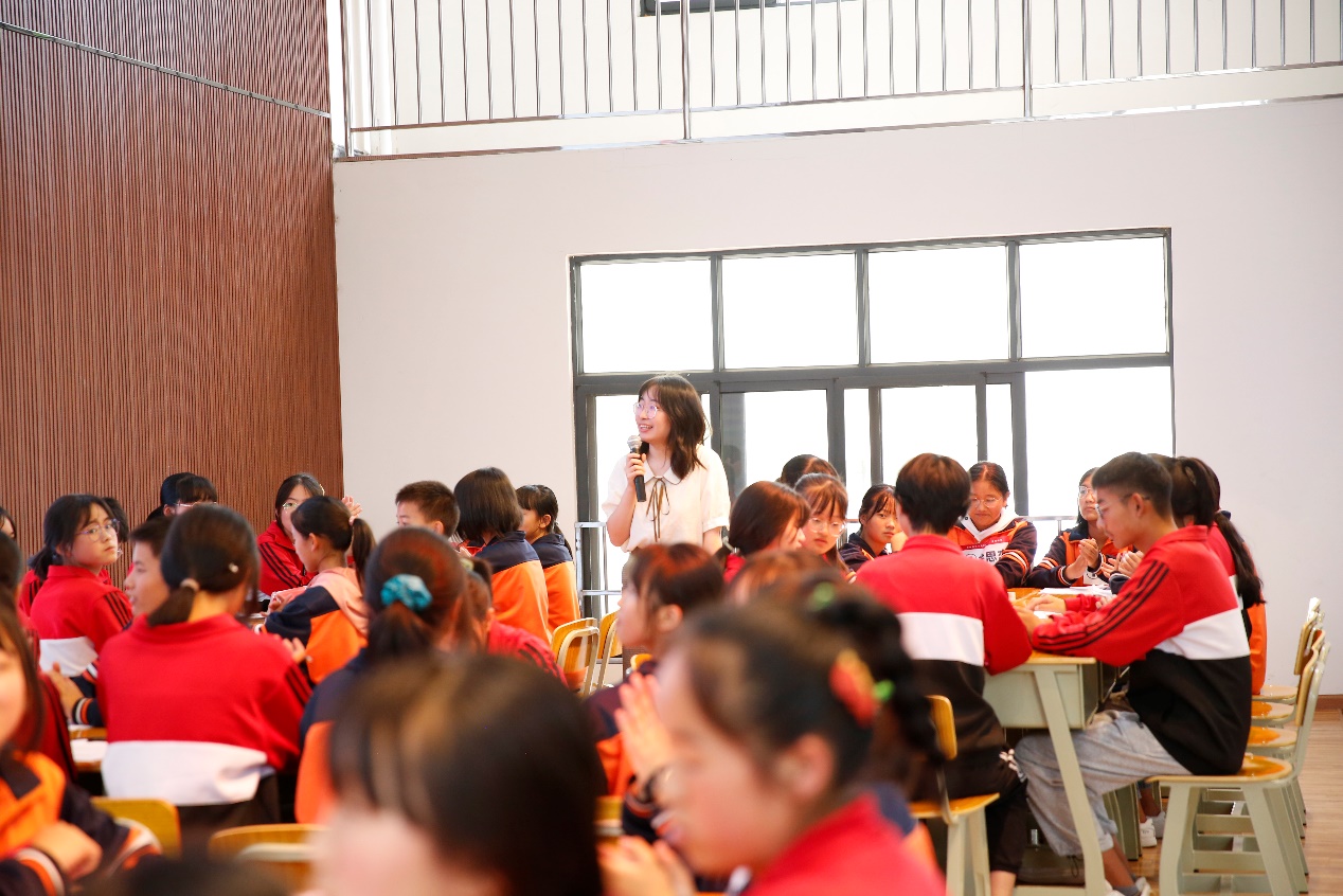 会上,金所中学“英语能力提升”项目负责人张兆庆老师拿出了口语班学生为麻豆视频 志愿者小老师们写的信,这些信纸和信封都是同学们精心挑选的。她动情地分享了印象深刻的内容——“自从进了英语口语班之后,我就超级无敌喜欢英语了,就像饥饿的人扑在面包上一样”、“我几乎每次举手都会被叫到,说完了都能被老师表扬,诶嘿嘿,就很棒”、“纸上的信虽然已经标上句号,但我们之间的故事却还在继续前进,你我不管身处光明或黑暗,内心一定是,全是祝福,满是美好”、“我们羞怯,你们鼓励;我们失落,你们打气”、“你们的目光,像春日的暖阳,给我们温暖;你们的话语,犹如不落的太阳,谆谆教导,循循善诱”、“我们生活的小县城,没有高楼大厦,没有车水马龙的街道,没有星巴克,我们的世界很小,没有去过很远的地方,也没有见过外面的世界的天空,但你们精心制作的课程——‘寻声之旅’,却让我们看见了不一样的天空空,让我们见识到了更广阔的世界”、“课堂中的我们总是抛去‘老师’这一偶像包袱,取而代之的是至友之间的温馨交谈”。这些稚嫩深情的话语让在场的老师们十分动容。麻豆视频 学生志愿者王彤表示,负责项目的这一年能感受到学生们的变化和成长,师生关系的进一步密切。非常感谢有机会结识这么多可爱的同学们,希望口语班的收获和鼓励能够帮助他们继续前行,走的更远更高。