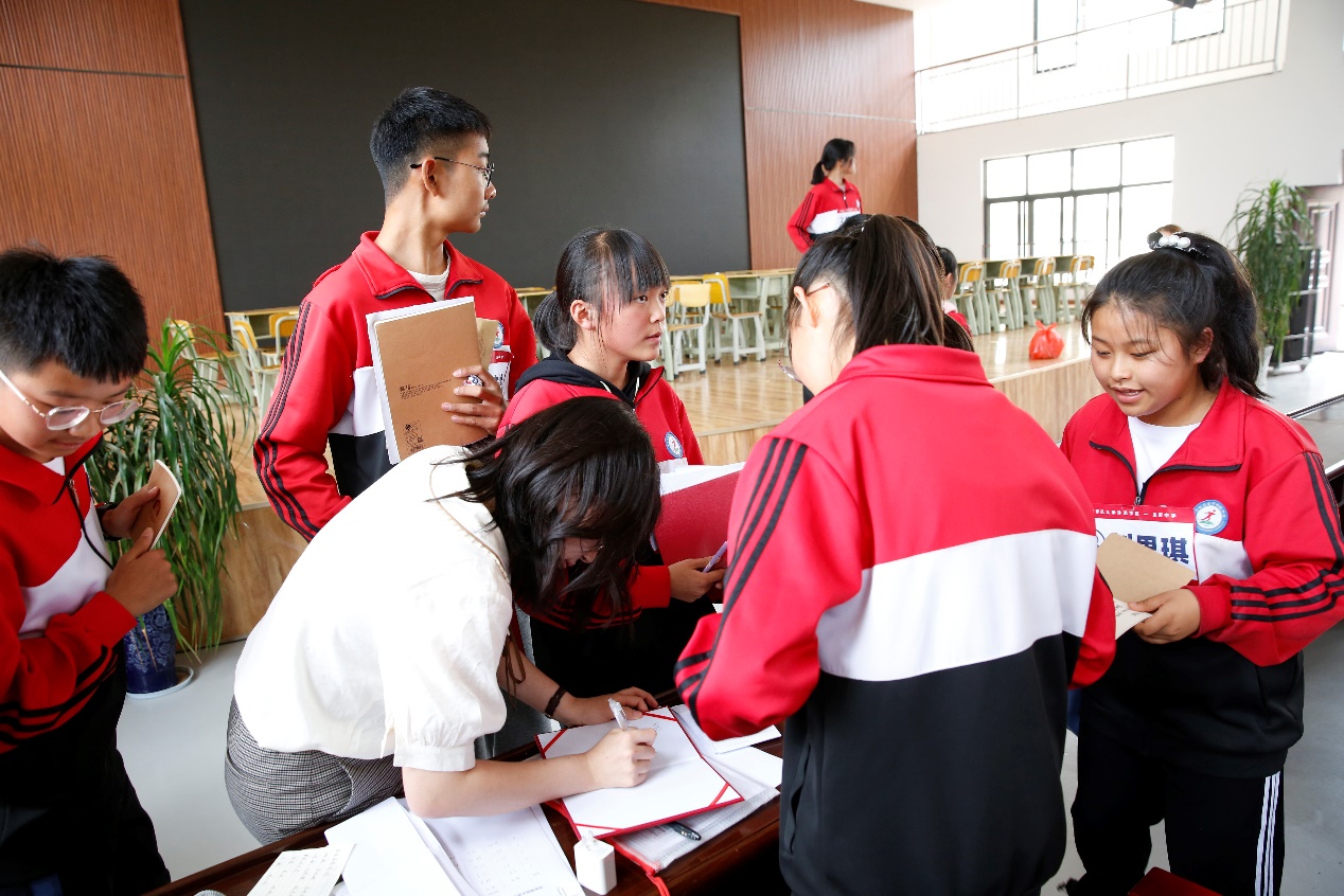 最后,全体口语班学生站在台前合唱英文歌曲《Big Big World》,大赛在动人的歌声中宣布结束。同学们整齐响亮的歌声为本届语音语调大赛和过去一年的“英语口语提升”项目画上了圆满的句号。赛后,许多八年级学生没有马上离开,他们围着志愿者老师们,诉说着感谢和期待,纷纷要求签名拍照留念。志愿者姚欣宇表示,此趟寻甸之行收获颇丰,从同学们的亮晶晶的眼中可以看到光和希望,让她对这段富有意义的教育帮扶志愿旅程充满了怀恋,更坚定了她在未来为人师表的教育理想。希望即将参加中考的同学们实现目标,向着梦想迈进。