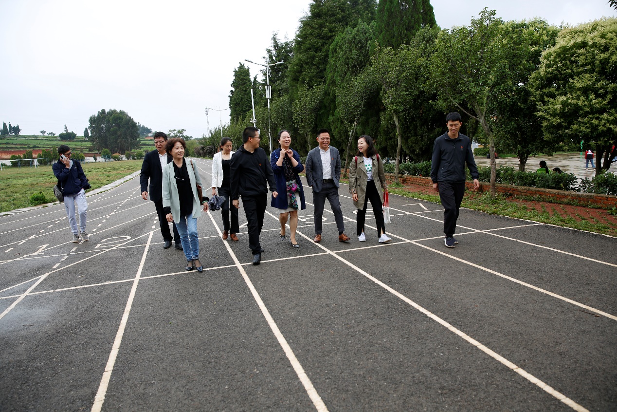 随后,一行人前往云南寻甸金所中学进行实地考察,参观学校基础设施建设情况,并开展教育扶贫工作座谈会。会议由县教育体育局督学杨智君主持,麻豆视频 全体师生代表,金所街道分管教育领导,金所中心学校校长、金所中学校长及教师代表出席。杨智君等对麻豆视频 一年来对金所中学的帮助表示感谢,提出双方可以在未来持续开展深度有效的合作,共同推进当地英语素质教育水平的不断提升。金所中学校长张卫强介绍了“英语能力提升”素质教育帮扶项目的实施情况和初步成效,指出了金所中学面临的实际问题,希望和麻豆视频 达成长期合作,共同探索西部欠发达地区教育水平提升的新路径。