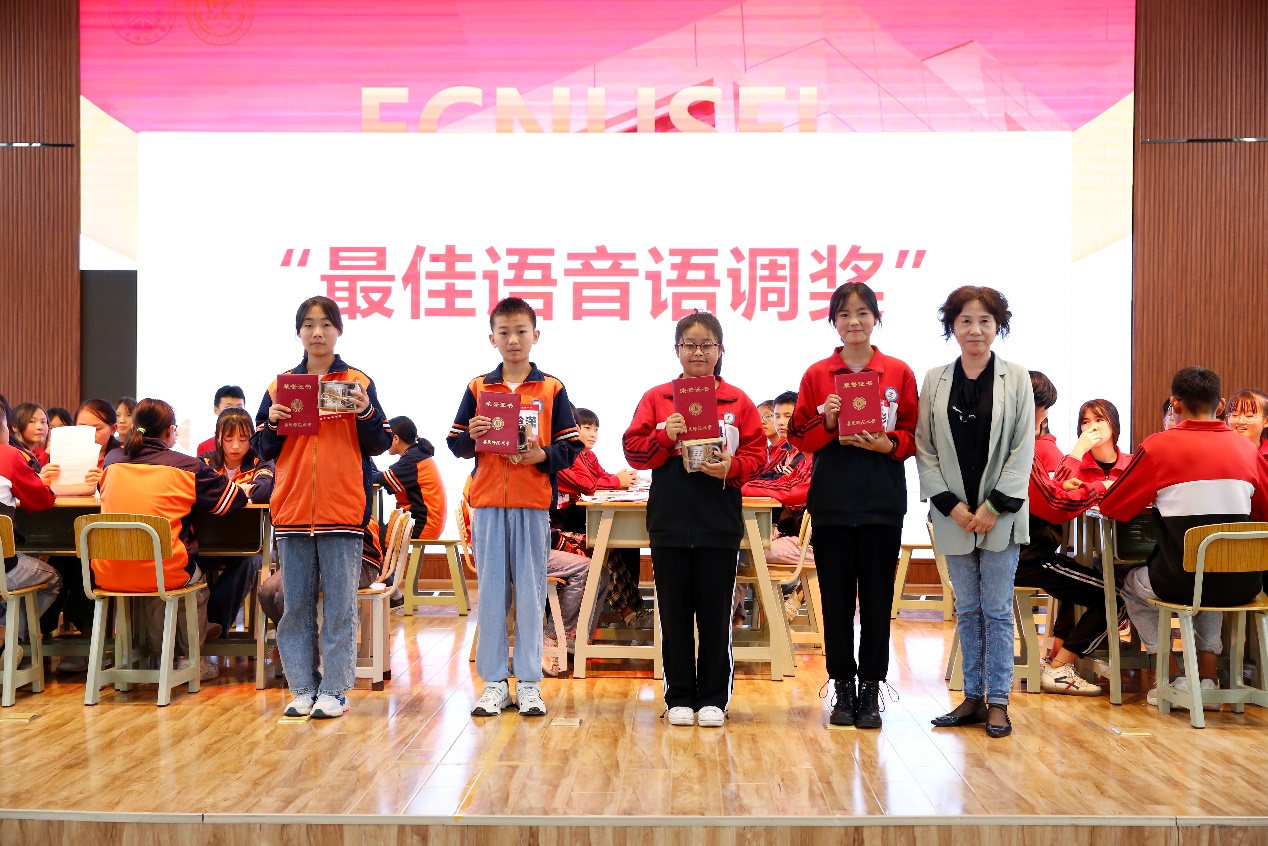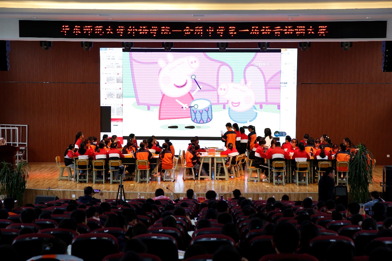 比赛中,金所中学口语班的同学们用扎实词汇储备、流利的口语表达,为在场的评委老师和观摩同学们留下了深刻的印象。在单词挑战和绕口令挑战中,有的选手虽然偶有卡顿,但在同组同学的帮助下都坚持完成朗读。在配音比赛环节,选手们表演生动、感情充沛、模仿清晰,生动还原了原声动画片中人物的形象和性格,引来台下观众阵阵欢笑,现场气氛十分活跃。