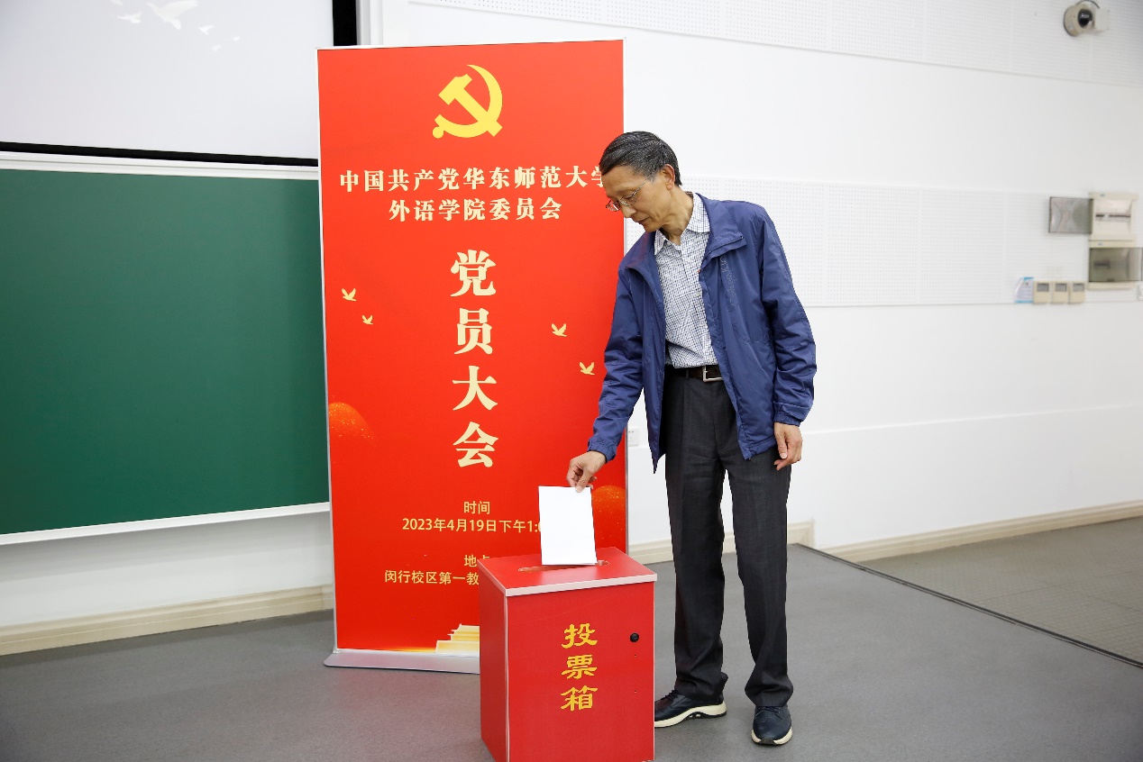 党委在闵行校区第一教学楼106报告厅召开换届选举党员大会,选举产生新一届党委委员,学院全体党员参加会议。大会由党委副书记兼副院长江宇靖主持。