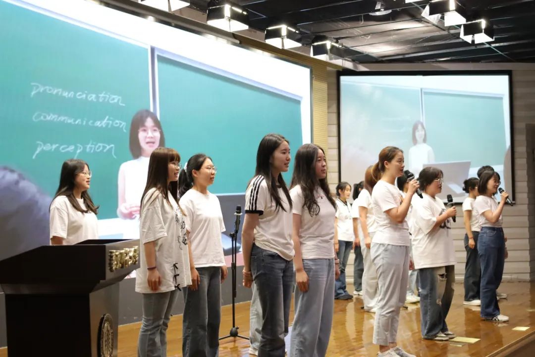 大赛中,学院2024级英语系与翻译系学生通过单词绕口令、国际新闻播报、电影配音及班级合唱四个环节,全面展示了学生扎实的语音基本功与出色的跨文化表达能力。