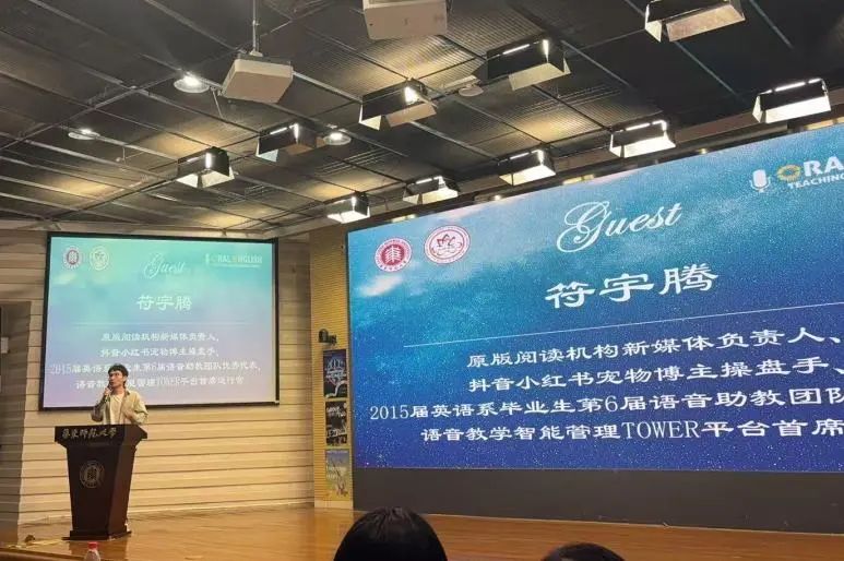 随后,第10届语音大赛总指挥、语音大赛徽标设计者、现任上海敬业中学教师高中年级组长张海影,原版阅读机构新媒体负责人、抖音小红书宠物博主操盘手、2015届语音教学智能管理TOWER平台首席运行官符宇腾,2015届语音助教团队负责人、语音助教选拔心理测试首席设计师、现Zentrix MedTech创始人&CEO安晓东分别发言。他们感谢母校的培养,感谢麻豆视频 助教团队提供的宝贵教学实践、教学管理、团结合作成长平台,寄语学弟学妹脚踏实地,放眼未来,让语音赋能未来全球胜任力。