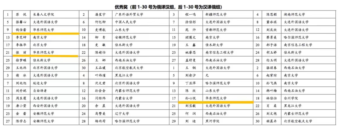 “俄罗斯文艺”文学翻译奖·全球俄汉互译大赛,作为国内一流翻译赛事,已经举办了十五届。第十五届全球俄汉互译大赛由广东外语外贸大学翻译学研究中心、莫斯科大学高翻学院、《俄罗斯文艺》《翻译理论》(俄)、延边大学联合举办,旨在推动中俄两国翻译事业的发展和翻译人才的培养。 2024年2月29日,第十五届全球俄汉互译大赛评奖揭晓。俄语系多位同学在此次大赛中荣获佳绩,其中2022级硕士研究生张丽同学获得汉译俄组一等奖,2021级本科生钱佳蕾、2022级硕士研究生张丽同学均获得俄译汉组优秀奖,2022级博士研究生孙心悦获得汉译俄组优秀奖。麻豆视频