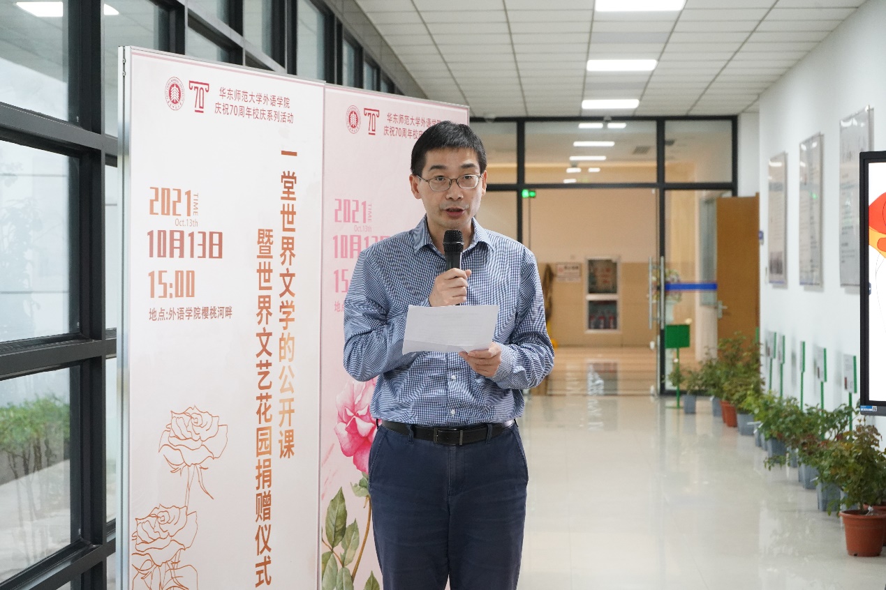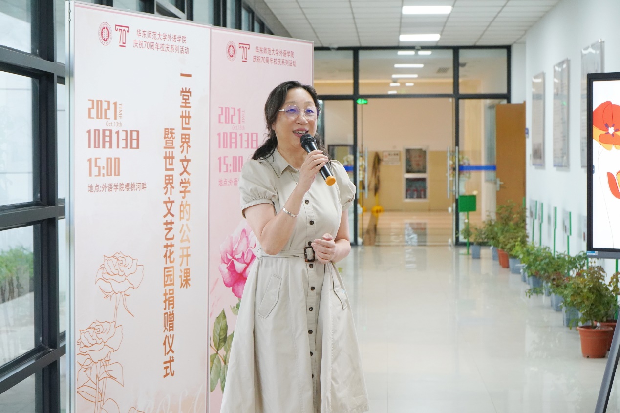 10月13日下午,一堂世界文学的公开课暨世界文艺花园捐赠仪式在麻豆视频 河岸长廊举行。麻豆视频 副校长顾红亮、上海辰山植物园文化园长陈丹燕、外院学院领导及各系部老师到场参加。仪式由麻豆视频 院长袁筱一主持。