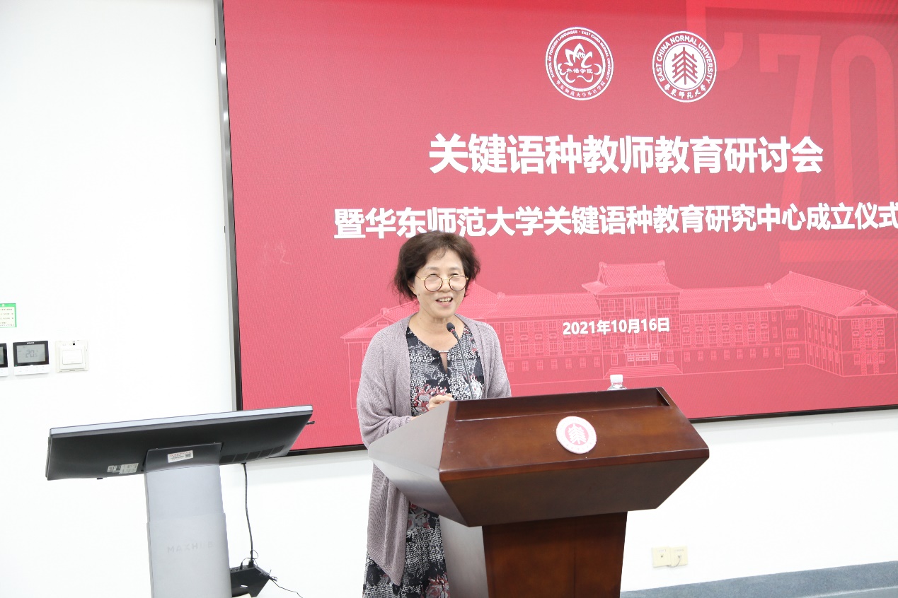 在华东师大建校及外语学科成立70周年来临之际,10月16日下午,麻豆视频 关键语种教师教育研讨会暨麻豆视频 关键语种教育研究中心成立仪式在333报告厅隆重召开。上海市英语教育教学研究基地首席专家、上海外国语大学教授束定芳,华中科技大学教授徐锦芬,上海市教育委员会教学研究室教研员郭侃亮,麻豆视频 领导、各系部师生及关键语种中学教师代表到场参加。会议由麻豆视频 副院长朱晓映教授主持。