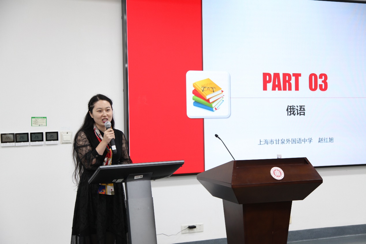 在随后的校友论坛上,上海市教育委员会教学研究室教研员郭侃亮、甘泉外国语中学日语教师王颖芳、甘泉外国语中学俄语教师赵红旭 、浦东外国语学校法语教师花威、闵行外国语中学德语教师赵苑琳、甘泉外国语中学西班牙语教师王媛媛就上海市中学关键语种的课堂教学与未来发展进行了汇报交流,从语言能力、文化意识、思维品质、学习能力等方面分享了自己在高中外语学科核心素养培育中的经验与体会。作为麻豆视频 优秀毕业生代表,他们已经在中学关键语种教学研究领域躬耕多年,为关键语种教学做出了突出的贡献。希望借以优秀校友的精彩分享,给予师生思想的启迪与行动的方向,为关键语种学科建设添砖加瓦。