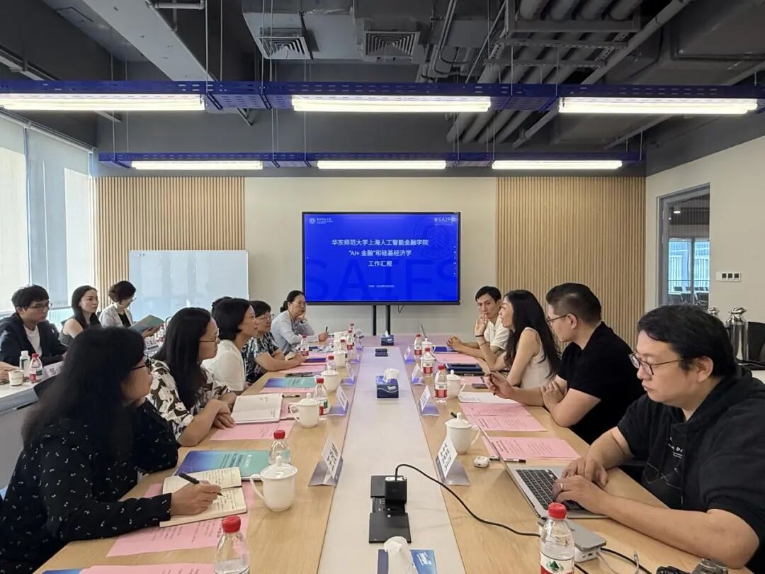在上海人工智能金融学院,调研团在上海人工智能金融产业研究院副院长汤傲成的带领下开展实地参观与学习,直观感受人工智能与金融这一前沿交叉领域的最新发展动态。随后,上海人工智能金融学院及产业研究院院长邵怡蕾详细介绍了学院自成立500余天以来的快速发展历程,重点介绍了学院在人工智能与金融交叉领域构建的六大核心数据池及取得的多项核心成果,集中展现了人工智能金融领域的前沿发展水平与 “AI +金融” 的多元应用场景。麻豆视频 党委书记韩春红则围绕学院学科建设、人才培养、科学研究三大核心工作展开介绍,并重点介绍了近年来外语学科转型发展、推动AI赋能学科建设的相关实践与进展。在双方交流研讨环节,麻豆视频 副教授邹航分享了学院在计算语言学领域的研究基础与最新成果,双方聚焦科研协同、人才培养等议题展开了富有建设性的研讨。