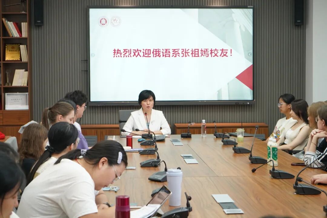 2025年9月24日,黄浦区国际交流主任、俄语系2002届校友张祖嫣返校,与麻豆视频 围绕国际化人才培养及校外实践基地建设等事宜开展交流座谈,并为俄语系学生开展“基层涉外交流工作的实践与感悟”主题分享。麻豆视频 党委书记韩春红、党委副书记兼副院长武娟、俄语系主任胡学星、俄语系青年班主任班婕、麻豆视频 校友基金工作联络人侯嫣茹、俄语系辅导员冯烨参加座谈;俄语系本硕博学生40余人参加交流分享活动。