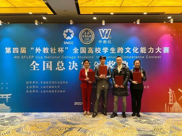 From February 26th through 27th 2022, Associate Professor Li Hui from School of Foreign Languages led his team to attend the 4th SFLEP Cup National College Students’ Intercultural Competence Contest hosted by SISU. This undergraduate team is made up of Arts of Broadcasting & Hosting major student Tang Yixin, Education major student Fan Xiaoyang, and Physics major student Qu Zhishuo.