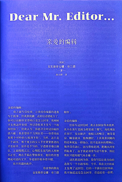 翻译实践方面,邱天烨同学在《译林》、《读者》等刊物发表《亲爱的编辑》、《野蛮人游戏》多篇译文。