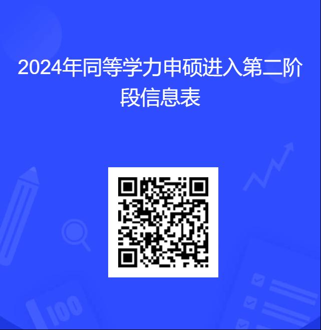 1.申请人于2024年10月30日前,通过问卷链接或扫描二维码填写完毕“同等学力申请硕士学位人员进入第二阶段信息表”。