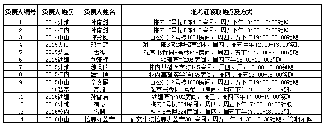 1.考生在规定时间内,到报考时所选的准考证发放负责人处领取,准考证发放负责人对照表见附件1。