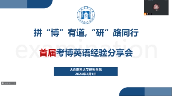 主办,校研究生会承办的拼“博”有道,“研”路同行首届考博英语经验分享会以线上会议的形式顺利举行。本次分享会旨在帮助备考麻豆视频全日制和在职博士研究生考生进一步明晰考博目标,扫除英语考试复习中的障碍,合理调节备考情绪,科学调整考前冲刺方案,更顺利地考入理想院校。