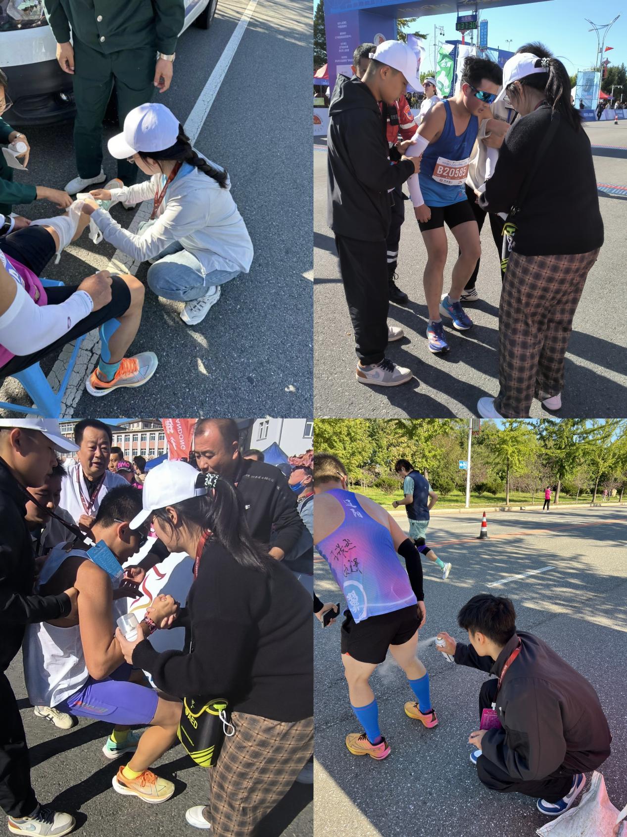 辅导员老师宋勇君、于小涵前往现场,组织选派近40余名研究生参加此次马拉松医疗服务志愿活动。
