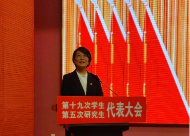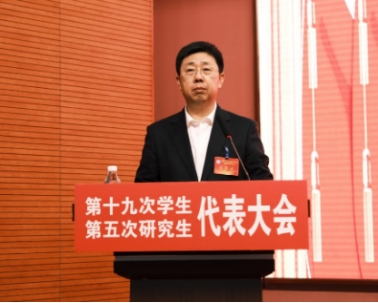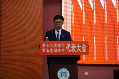 研究生张金龙代表第四届研究生委员会作了题为《担时代之责锤炼本领,扬青春之帆接续奋斗——为加快建设国内先进、国际知名的医科大学贡献青春智慧与力量》工作报告。